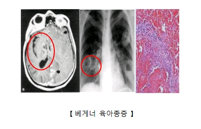 베게너 육아종증(Wegener's granulomatosis), 현재는 **Granulomatosis with Polyangiitis (GPA)**라는 이름으로 알려져 있는 질환은 자가면역성 질환으로, 주로 혈관염(혈관의 염증)과 육아종(염증성 세포 덩어리) 형성이 특징인 질환입니다. 이 질환은 주로 호흡기, 신장, 혈관에 영향을 미치며, 심각한 경우 여러 장기에 영향을 미칠 수 있습니다.
