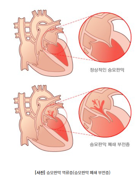 - 특히 판막이 노화되면서 탄력이 떨어지거나 두꺼워지기 때문에 승모판이 제대로 닫히지 않고 탈출하는 현상이 발생할 수 있습니다.