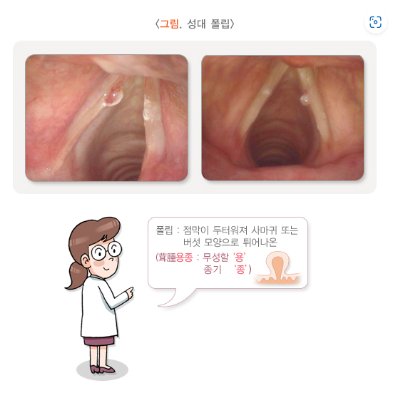 - 점막의 변형: 만성 염증이 계속되면 후두 점막의 구조적 변화가 일어날 수 있습니다. 점막이 두꺼워지고, 부드러운 세포가 경화되거나 변형되어 후두의 움직임과 발음 기능을 방해할 수 있습니다.