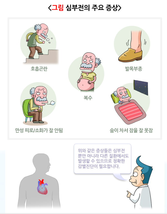 - 심부전 환자는 만성적인 증상과 불안, 우울증, 스트레스 등의 심리적 문제를 겪을 수 있습니다. 이를 해결하기 위해 심리 상담이나 정신적 지원이 중요합니다.