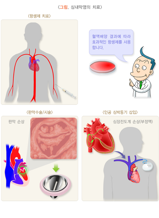 - 감염 원인균을 사멸시키고, 심장 내막에 형성된 염증을 치료하여, 감염의 진행을 방지하고, 심장 판막에 발생한 손상을 회복하는 것이 목표입니다.