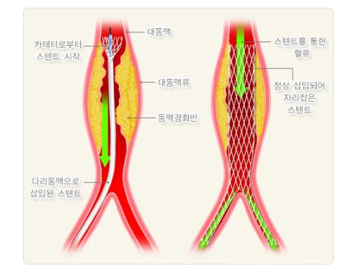 - 스텐트 삽입술: 내시경을 통해 하대동맥에 스텐트를 삽입하여 협착된 부위를 넓히고 혈류를 개선합니다.