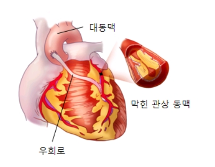 | 관상동맥 | 예후 불량 | 협심증, 심근경색, 심부전 |